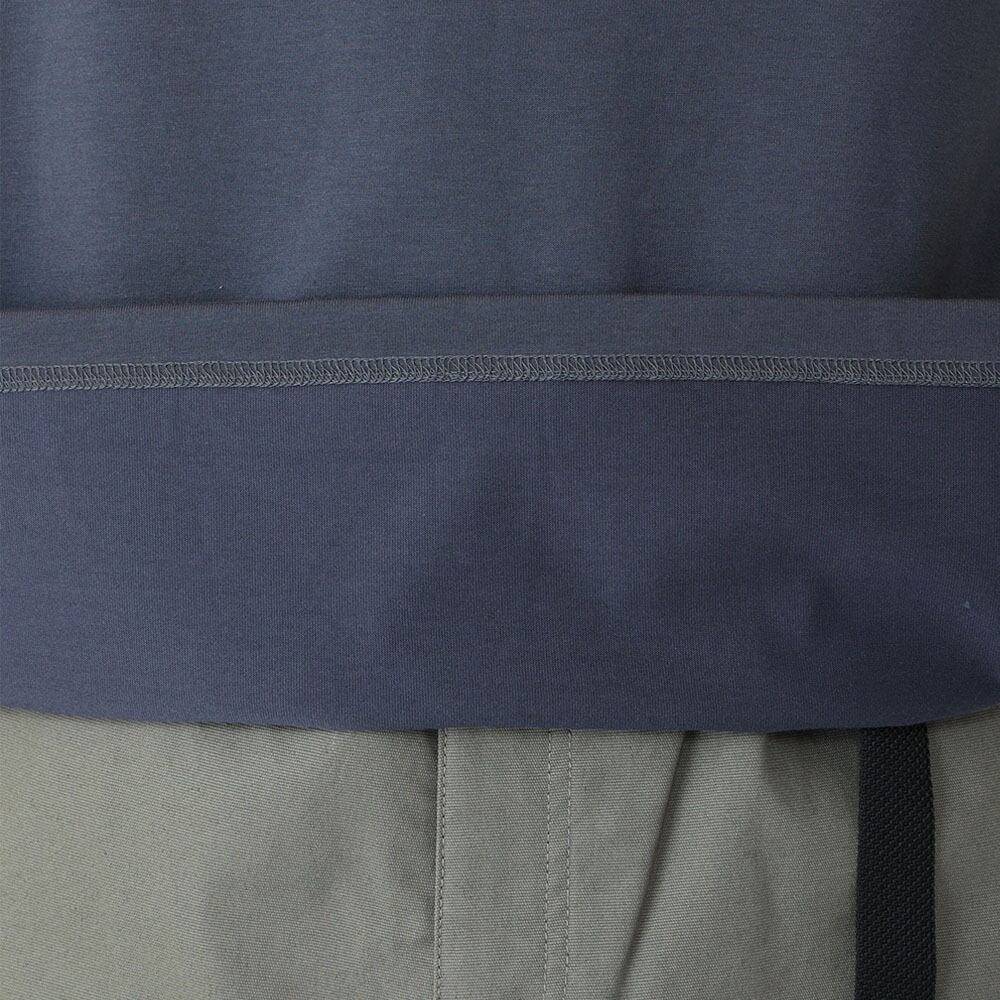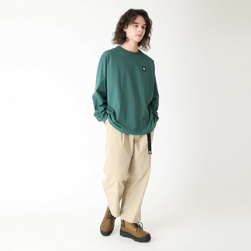 程よい厚みのあるミディアムウエイトのTC素材を採用し、一枚で着ても、アウターの下にインナーとして取り入れても快適に使える万能なロンTです。