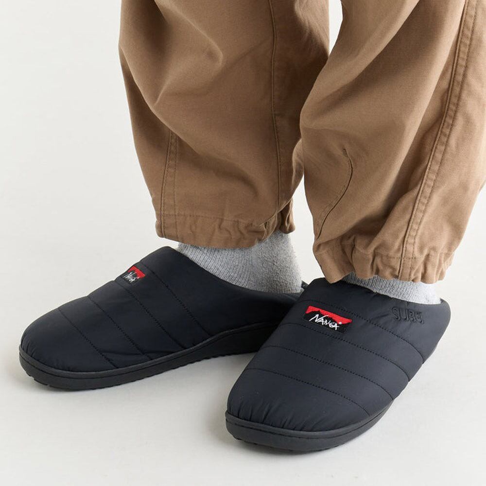 履いた瞬間、冬が好きになる。 ナンガ×スブが贈る、冬の足元を極上の暖かさで包み込む「最強ウィンターサンダル」。 冬、外に出るのが少し楽しみになる??そんな気持ちにさせてくれるのが、NANGA(ナンガ)×SUBU(スブ)の特別コラボモデル「AURORA TEX WINTER SANDAL(オーロラテックス ウィンターサンダル)」です。 アウトドアブランド・ナンガが誇る防水透湿素材 AURORA-TEX(オーロラテックス) をアッパーに採用。雪や雨を弾き、内部の湿気を逃がして、足元を常にドライで快適にキープします。 中綿にはナンガならではの高機能インシュレーションを封入し、まるでダウンブーツのような暖かさを実現。内側のボアライニングが足をふんわり包み、履いた瞬間から心まで温まるような快適さです。 また、SUBU独自の4層構造インソールが高いクッション性を発揮。長時間履いても疲れにくく、冷たい地面からの冷気をしっかり遮断します。 軽やかに履けるスリッポンタイプで脱ぎ履きもスムーズ。アウトドアシーンはもちろん、街履きや室内履きとしても違和感のない万能デザインです。 サンダルでありながら、ブーツ並みの防寒性能。冬キャンプやベランピング、車中泊、寒い朝の犬の散歩など、あらゆる冬のシーンにマッチします。 一度履けば手放せない、冬の相棒となる一足です。 【特徴】 ・防水透湿素材「AURORA-TEX」採用で全天候対応 ・中綿入りで抜群の保温性 ・内側ボア仕様で極上の履き心地 ・4層構造インソールによる優れたクッション性 ・冷気を遮断する耐久ソール ・ユニセックス仕様でギフトにも最適 【おすすめポイント】 ・「ブーツより気軽」「スリッパより暖かい」冬の新定番 ・冬キャンプやアウトドア、ベランダ履きなど多用途 ・簡単に脱ぎ履きできるスリッポンスタイル ・シンプルで洗練されたデザイン 【ブランド】ナンガ×スブ / NANGA×SUBU 【モデル名】オーロラテックス ウィンター サンダル / AURORA TEX WINTER SANDAL 【メーカー品番】NA2443-3E105 【素材】生地:オーロラテックスR / ソール:合成ゴム 【サイズ】0 [22?23.5cm]、1 [24?25.5cm]、2 [26?27.5cm]、3 [28?29.5cm] 【カラーバリエーション】BLK、M.GRY、CYT、BEG、LIME、TQS 【対象】メンズ、レディース、ユニセックス、ジュニア、キッズ、オールジェンダー 【商品分類】 ナンガ サンダル、SUBU サンダル、オーロラテックス サンダル、ウィンターサンダル、防寒サンダル、撥水サンダル、ダウンサンダル、防水スリッポン、冬用スリッポン、アウトドアサンダル、キャンプサンダル、保温スリッパ、ルームシューズ、焚き火サンダル、リラックスサンダル、タウンユース、ノースリッポン、モックシューズ、滑りにくいサンダル、秋冬サンダル、NANGA SUBU コラボサンダル 【シーン】 冬キャンプ、焚き火、ベランピング、登山後のリラックス、車中泊、防寒通勤、冬の散歩、旅行、キャンプサイト、アウトドアフェス、防寒対策、室内履き、リビングルーム、ベランダ履き、夜の犬の散歩、ウィンタースポーツ観戦、通勤通学、防寒出勤、冬のドライブ、ストリートスタイル、カジュアルコーデ、冬ギフト、家キャンプ、キャンプファッション NANGA(ナンガ)は滋賀県米原市に本社を構える日本発のダウンメーカーで、社名はヒマラヤの高峰「ナンガバルバット」に由来します。創業74年を誇る老舗ブランドであり、羽毛の安全性と品質にこだわり、熟練の職人によって一つひとつ丁寧に仕立てられています。登山家から一般ユーザーまで幅広く支持され、「暖かく、軽く、安全」を追求するその姿勢が、国内ダウンブランドとして高い評価を得ています。