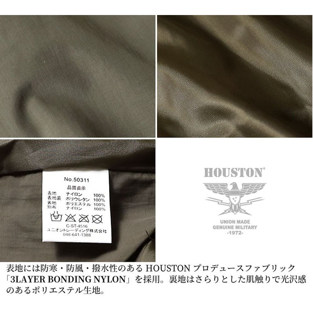 表地にはHOUSTONがプロデュースした「3LAYER BONDING NYLON」を採用し、防風性・撥水性に優れた仕上がり。