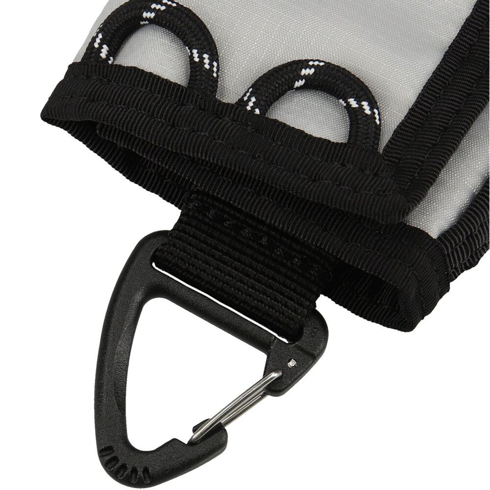 上部にはカラビナフックを備えており、バッグやベルトループに取り付けて持ち運ぶことができます。