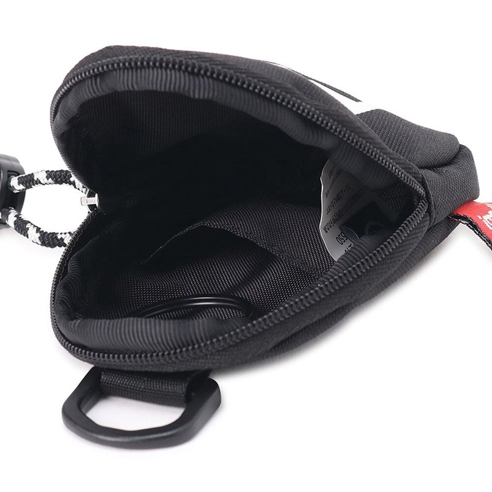 上部にはDカン付きで、ストラップやカラビナを取り付けてバッグやベルトループに装着可能。