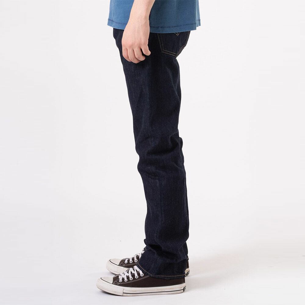 こちらはリジッド(未洗い、ノンウォッシュ)仕様。穿き込むほどに現れるヒゲやアタリ、色落ちはすべてが唯一無二。カスタマイズや自己表現を楽しみたい方にこそ選んでほしい一本です。