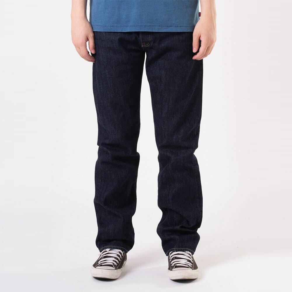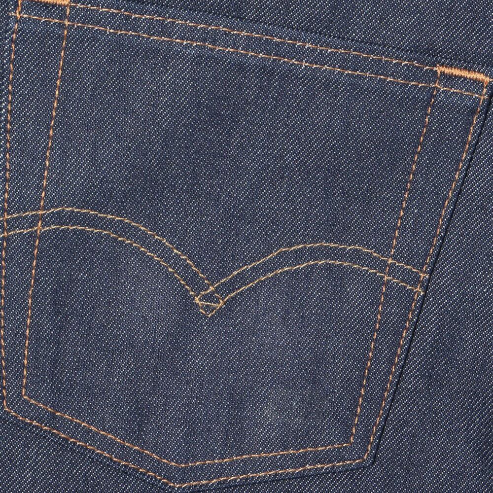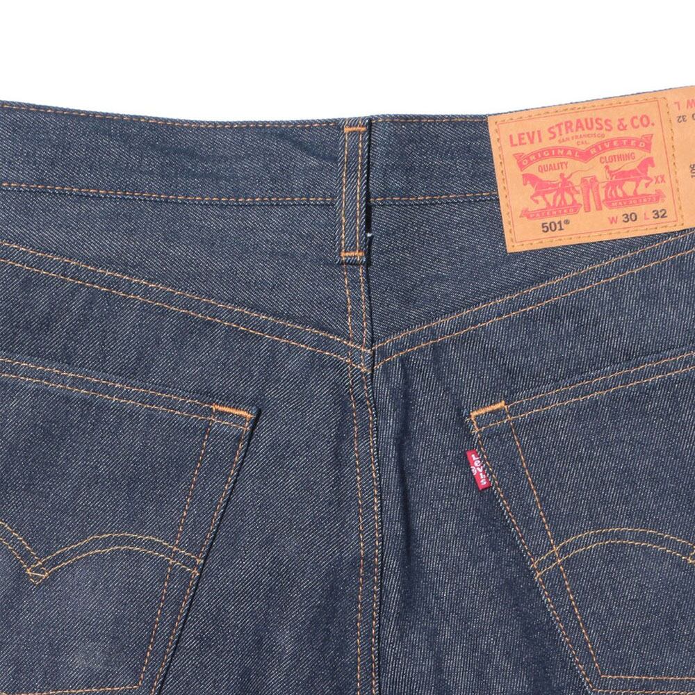 フロントは501の象徴とも言えるボタンフライ。素材はコットン100%のしっかりとしたデニム生地で、ジーンズらしい無骨さと耐久性を備えています。