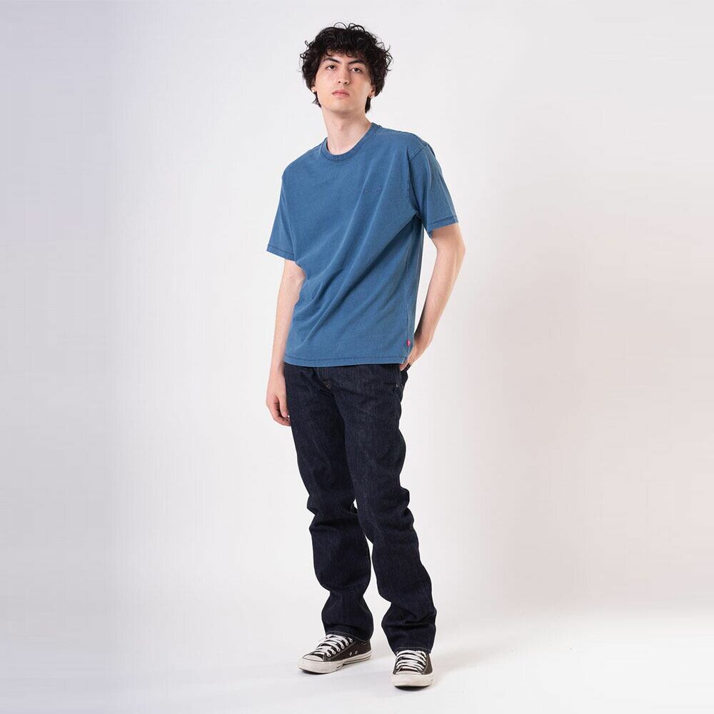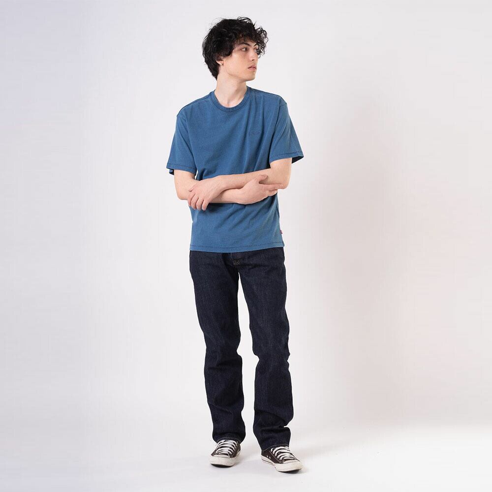 501を象徴するのは、流行に左右されないベーシックなストレートフィット。股上は程よい深さで、裾に向かってすっきりと落ちる王道シルエットです。穿く人の体型やスタイルを選ばず、その人らしさを自然に引き立てます。