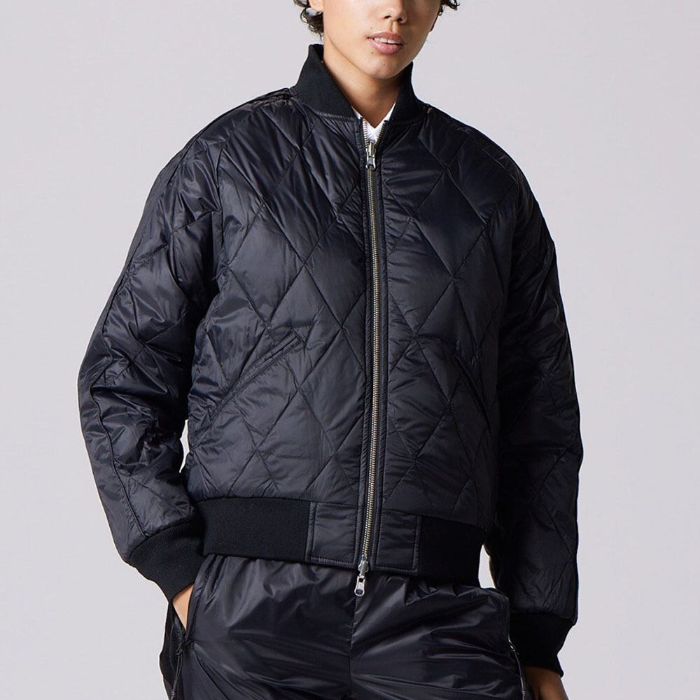 一方、裏面には高密度ナイロン生地を使い、ダイヤキルトが施されたクラシックなダウンジャケットスタイルに仕上げられています。このデザインの切り替えにより、カジュアルにもフォーマルにも使い回しが効く一枚です。